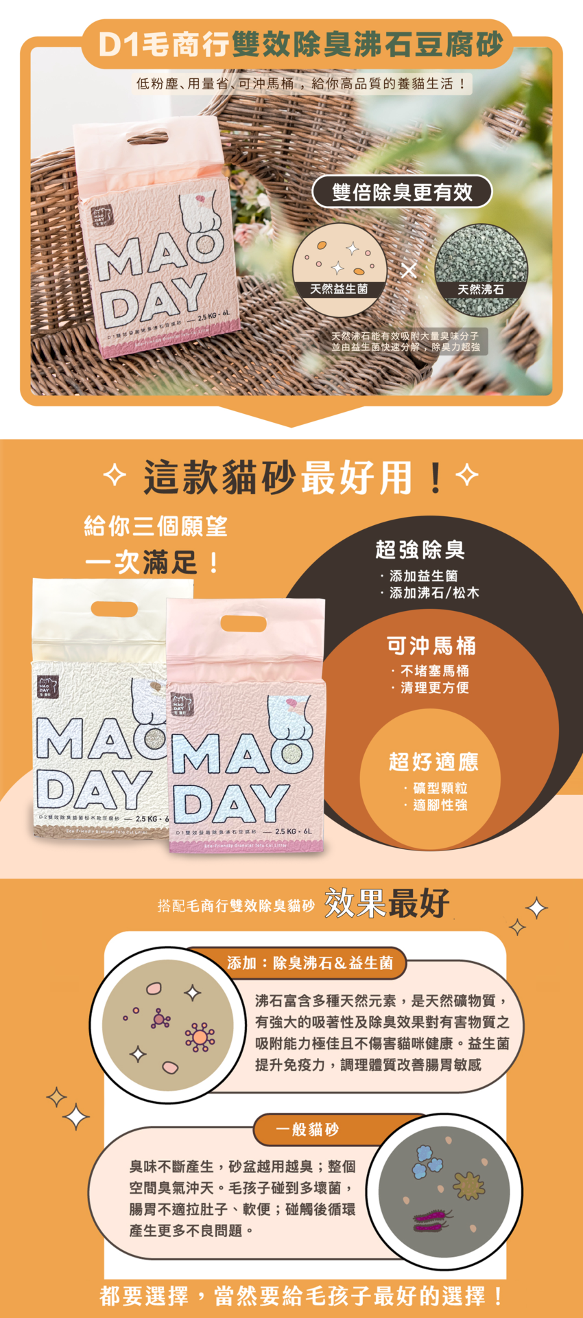 是礦型豆腐砂+松木砂,味道是木質香,各方面的效力都跟D1一樣好!