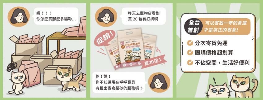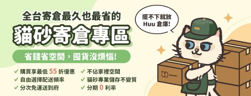 宅配免運:所有寄倉貓砂皆享 免運優惠