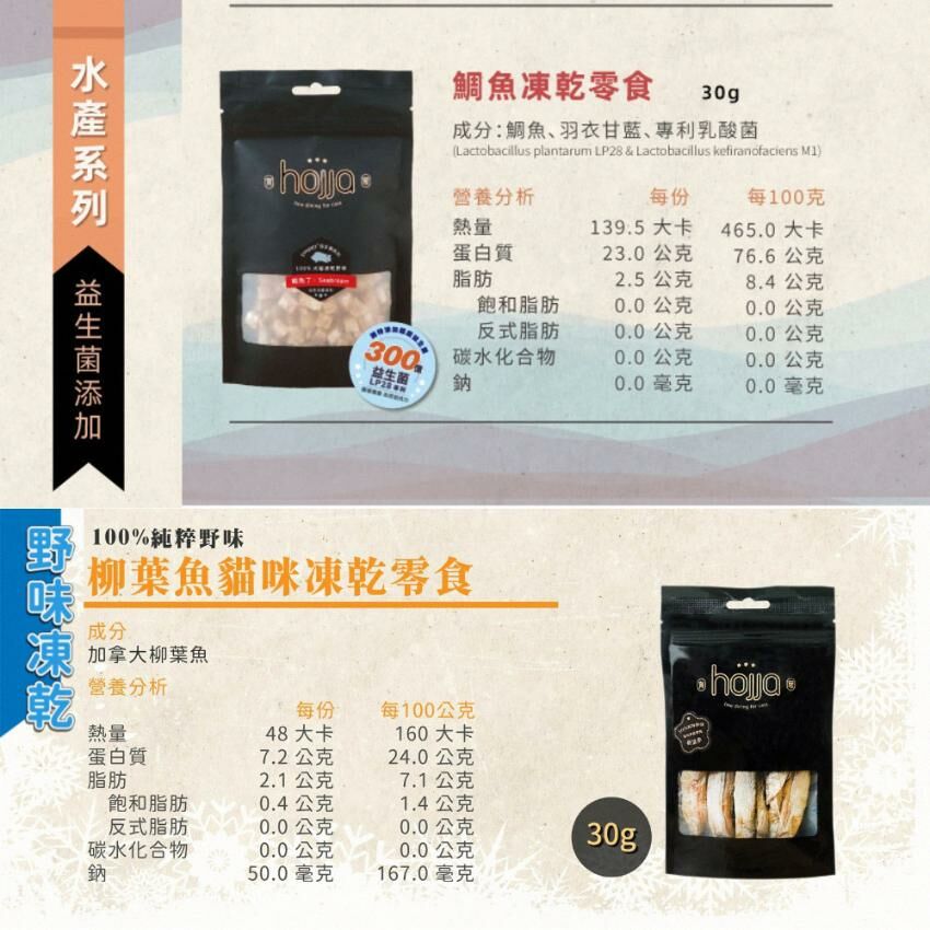 hojja 賀家 100%純粹野味 益生菌系列-鯛魚丁凍乾