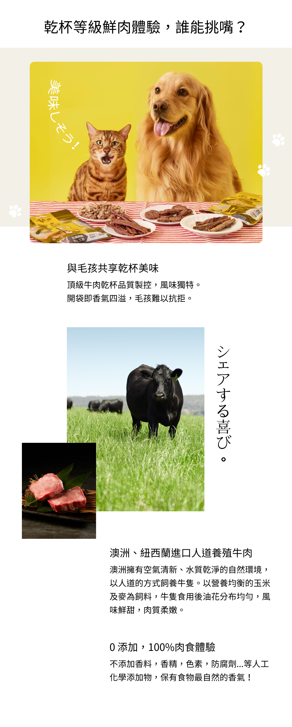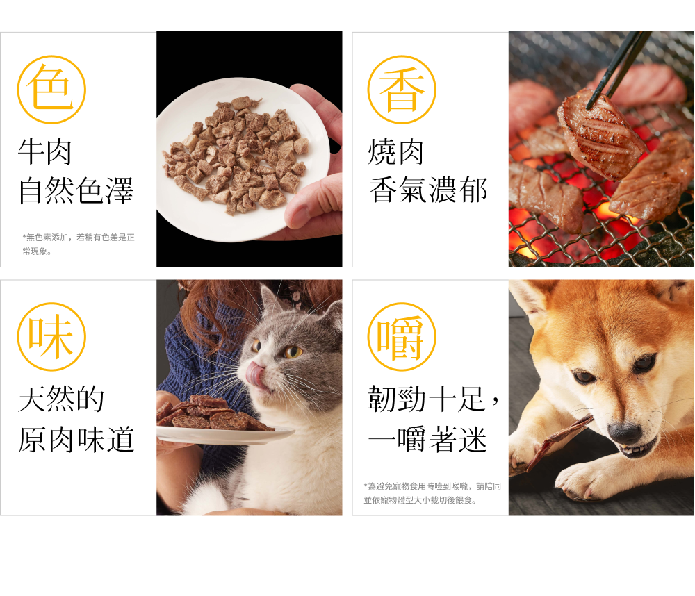 🦴 先進製程:採用低溫冷凍、真空乾燥和冰晶昇華技術,去除水分同時保留牛肉完整風味、外觀、色澤和營養。