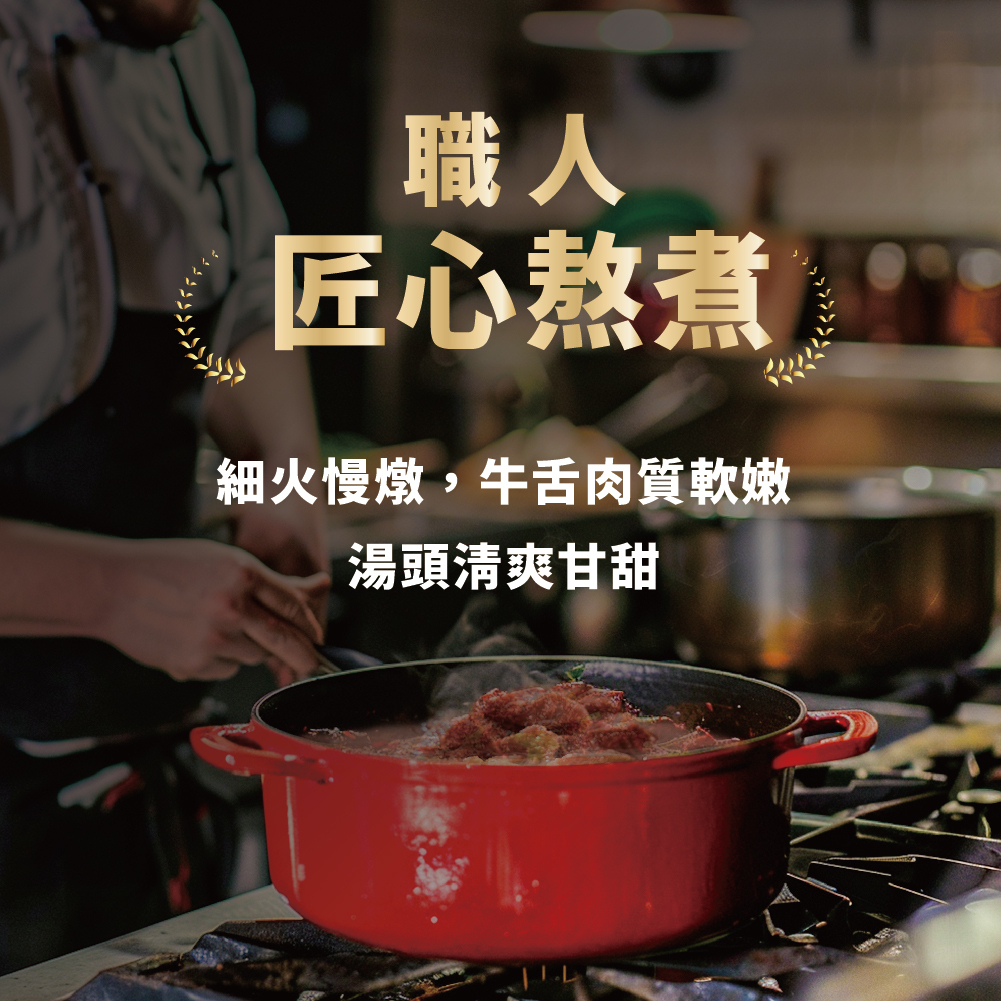 《毛孩乾杯》職人料理系列 燉煮牛舌,採用澳洲穀飼冷藏熟成牛舌,職人匠心烹調,保留肉質的鮮甜美味!