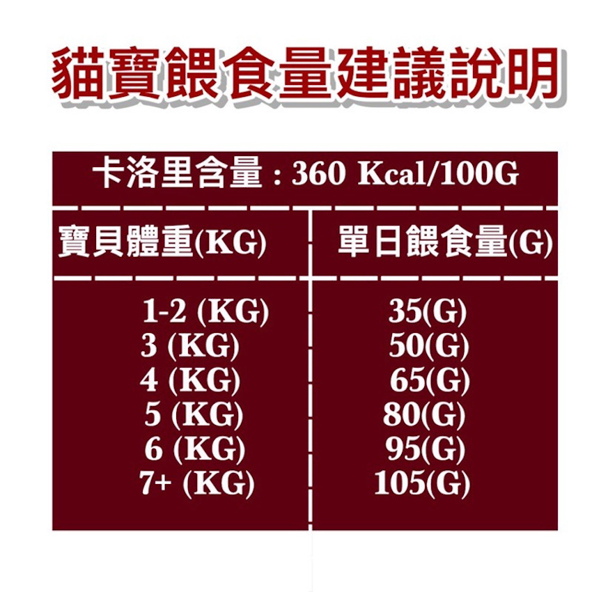 A: 建議依照毛孩的體型及需求調整餵食量,您可以參考下表的建議用量,也可以根據毛孩的體重和活動量進行調整。