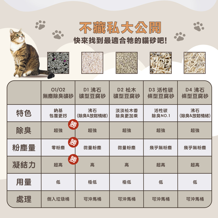 一般來說因豆腐砂成分的關係,礦砂的除臭力與包覆力會比豆腐砂來的好,而礦砂的部分是無法倒入馬桶的,必須倒入垃圾桶處理,相較來說豆腐砂是可以倒入馬桶的,重量也相較輕唷!