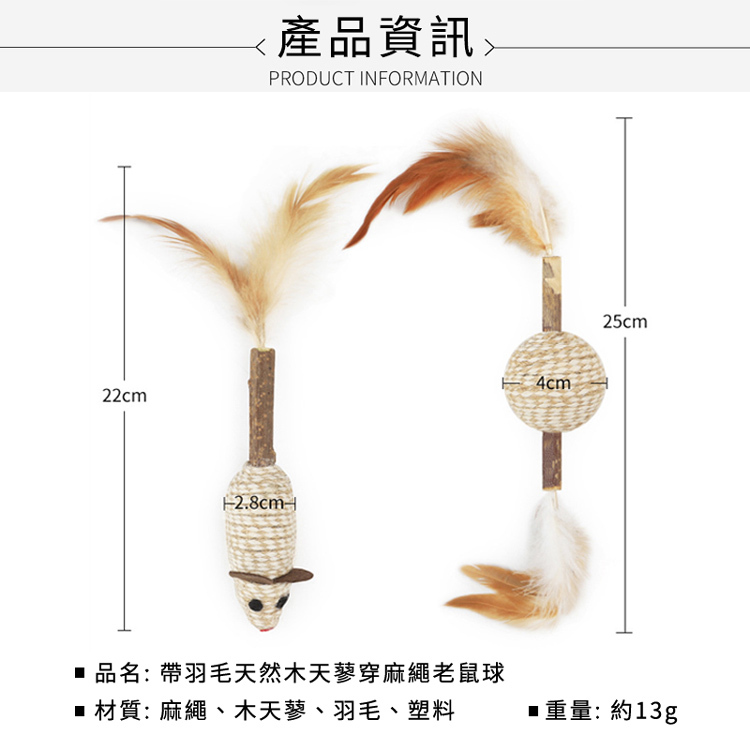 🐾 原色羽毛:吸引貓咪的天性,增添玩耍樂趣。