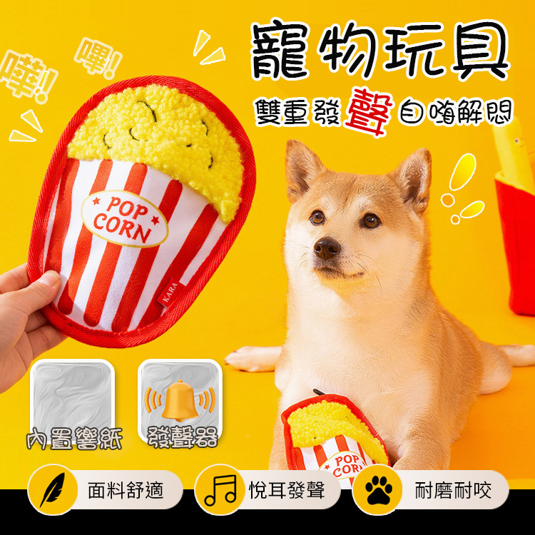 🍟 多款造型 🍟:有爆米花、漢堡、披薩等可愛造型,滿足毛孩多樣需求。
