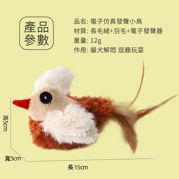 🔊貓薄荷發聲互動玩具 :模仿真實鳥叫聲,吸引毛孩注意力。