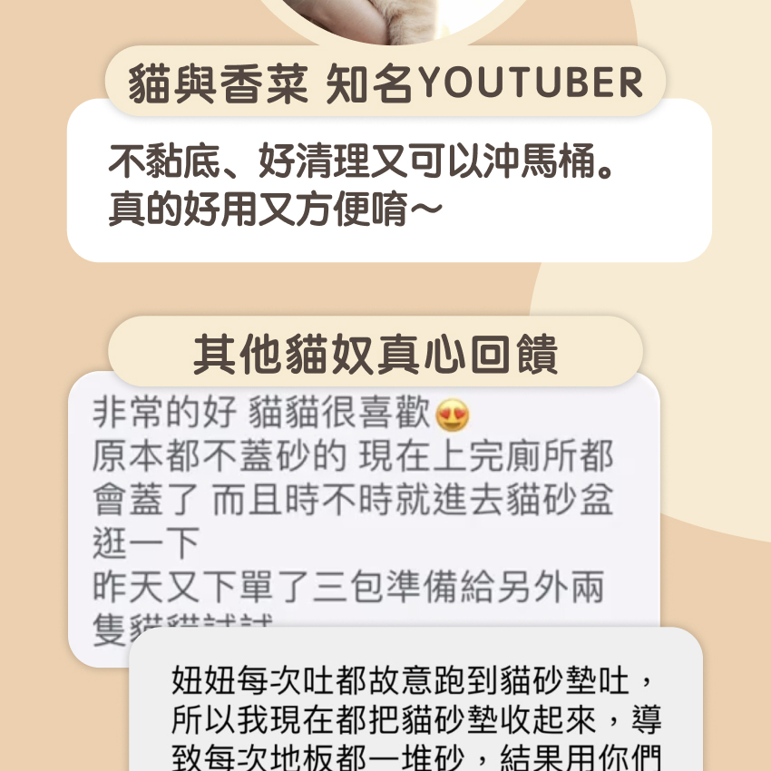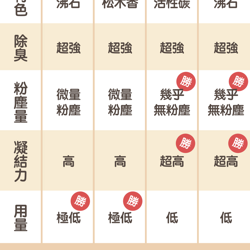 是礦型豆腐砂+沸石,味道偏香甜味,喜歡甜味的客人覺得像白巧克力