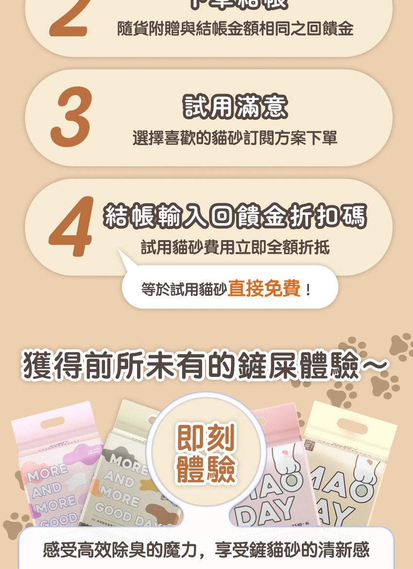 ◼️ 每位會員最多申請2包貓砂試用,2包即享免運