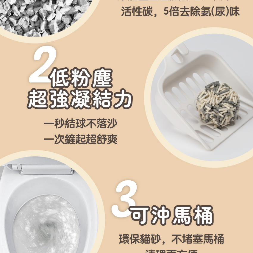 條型豆腐砂(直徑低於1.5mm、長度約1公分)+活性碳