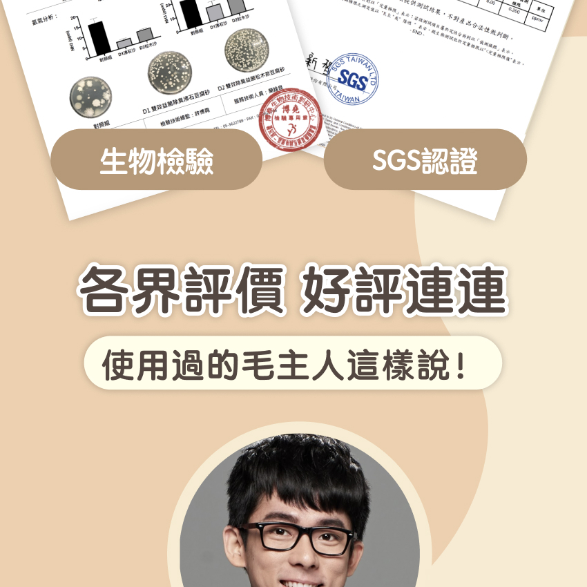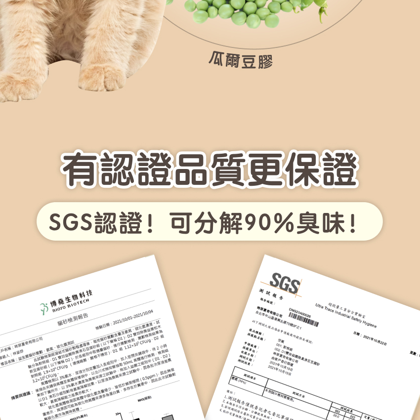 我們的貓砂添加了台灣製造且具有SGS認證的益生菌,可達到5倍的去除氨的效果,比普遍的益生菌還更能抑制住貓尿味喔!