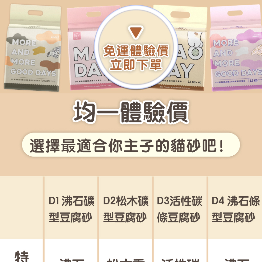 含D1-D5五款豆腐砂(D5系列隨機出貨,D51~D53僅包裝不同)。