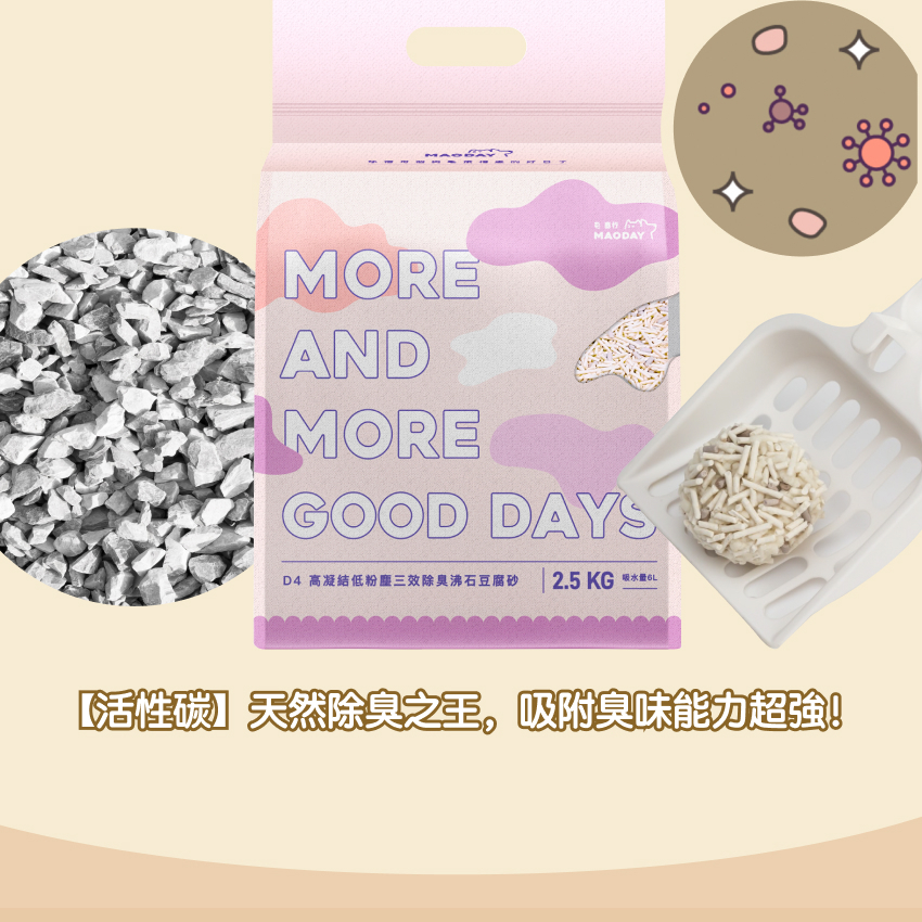 這個系列除臭成分也更升級,100%完全使用活性碳和沸石成份製作再加上原有的益生菌、植物原液,達到四效除臭,是一款除臭升級版的貓砂!